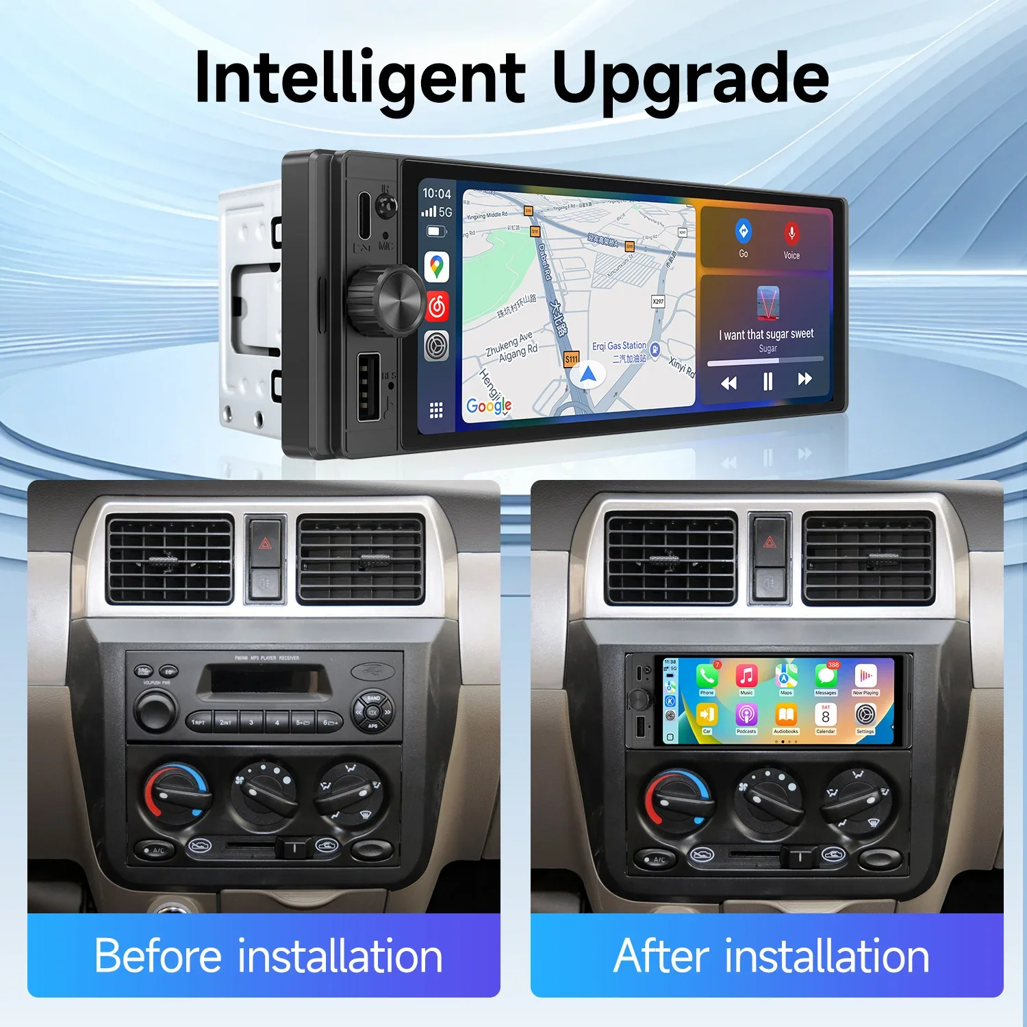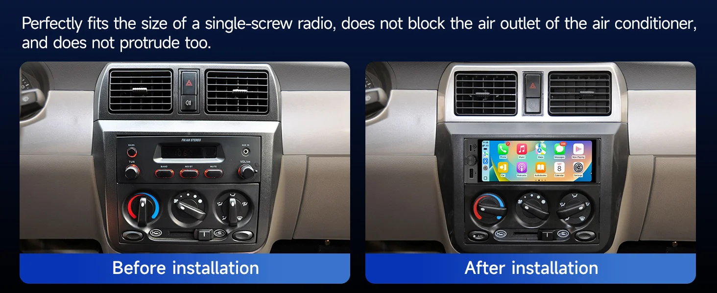 【Multiple Playback, Steering Wheel Control Function】The 1 din car radio compatible with Apple carplay voice control function, you can enjoy multiple video or audio playback. Also, you can connect the USB flash driver on the front usb port. Support multiple audio input and output.