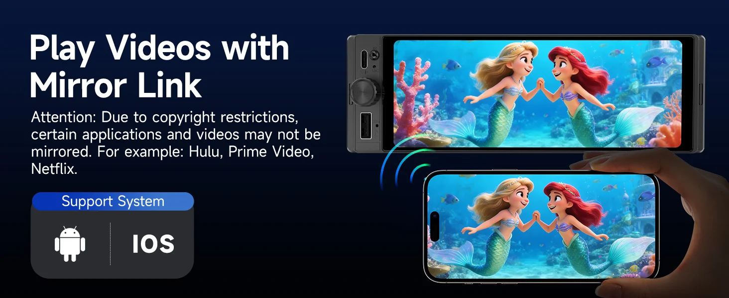 【Wireless CarPlay & Android Auto & Mirror Link】 The single din carplay car stereo can connect to the iOS/Android mobile phone via USB cable and use voice control CarPlay or Android Auto function, which can voice control and access to the phone calls, GPS navigation, video, music, emails etc. Driving be more convenient and enjoyable. Mirror link for iOS/Android phone both, then you can sync the phone’s screen on this 6.28 inch car radio
