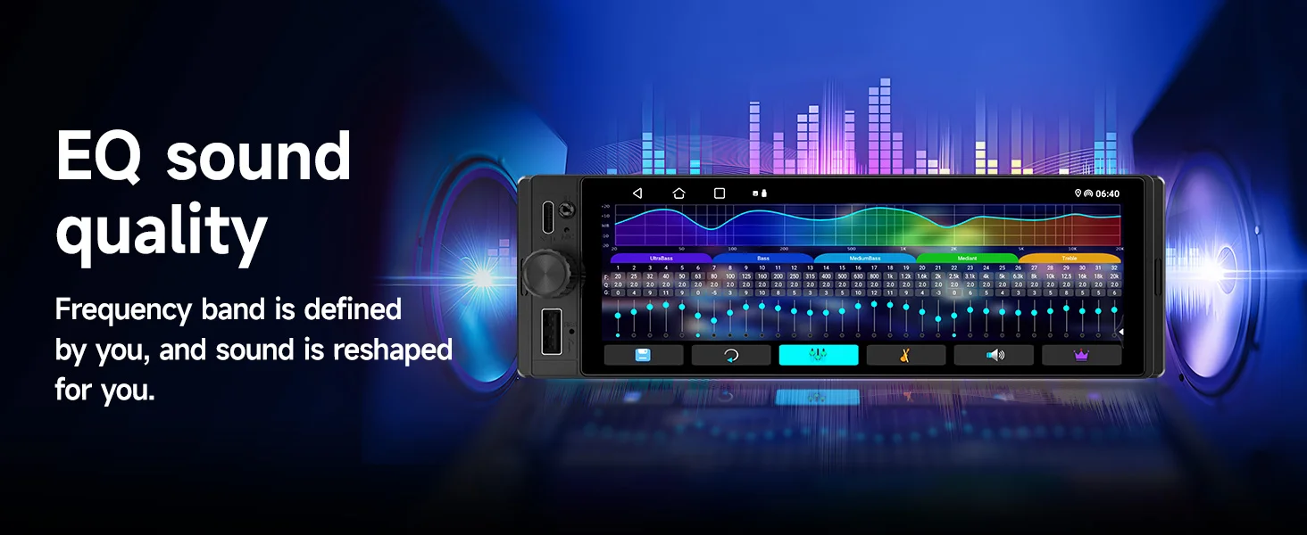 【Bluetooth & FM Radio Receiver EQ Sounds】Single din bluetooth car stereo with built-in wireless Bluetooth music and built-in mic for hands-free calling, steady BT connect and stable signal, improve phone call quality. FM radio with for listening music, news and weather broadcast. EQ sound effect enhance the radio sound quality