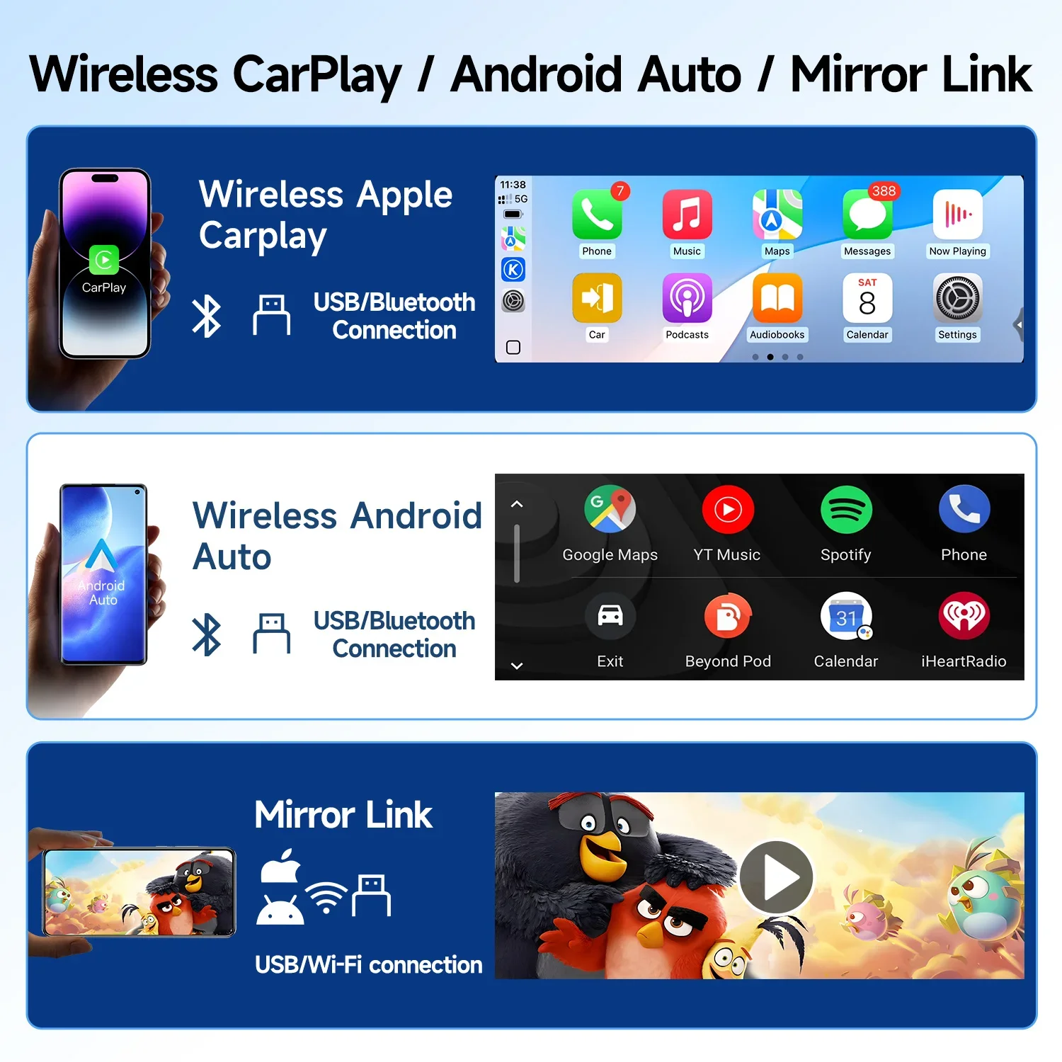 4. Supports Wireless CarPlay/Android Auto