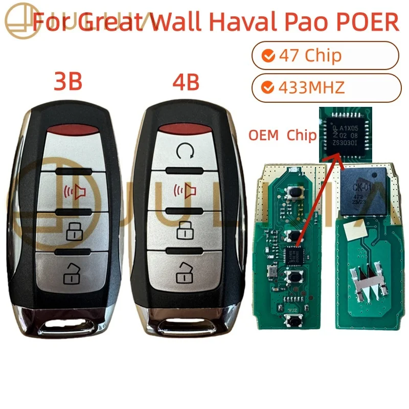 JULIJIA For Great Wall POER GWM Pao Poer Utility Haval UTE Cannon-X Pickup 47 Chip Keyless 4 Buttons 433Mhz Smart Remote Car Key