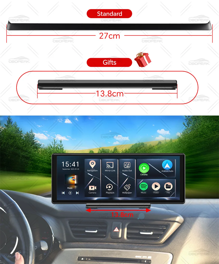 In order to match different car models, we specially offer a 13.8cm short bracket as a gift. If your car dashboard is uneven or has a small area, you can replace the long bracket and use this short bracket for installation, which is compatible with 99% of car models.
