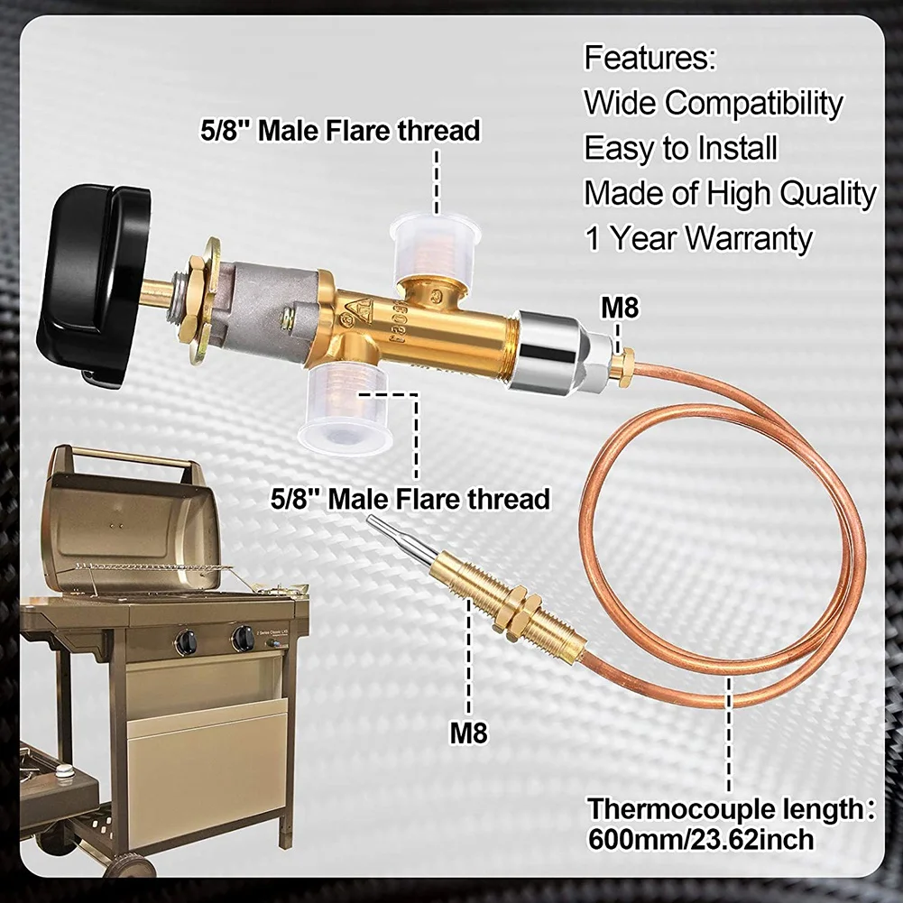 Low Pressure Gas LPG Fireplace Failure Safety Control Valve Kit Gas Heater Thermocouple Replacement 5/8-18UNF