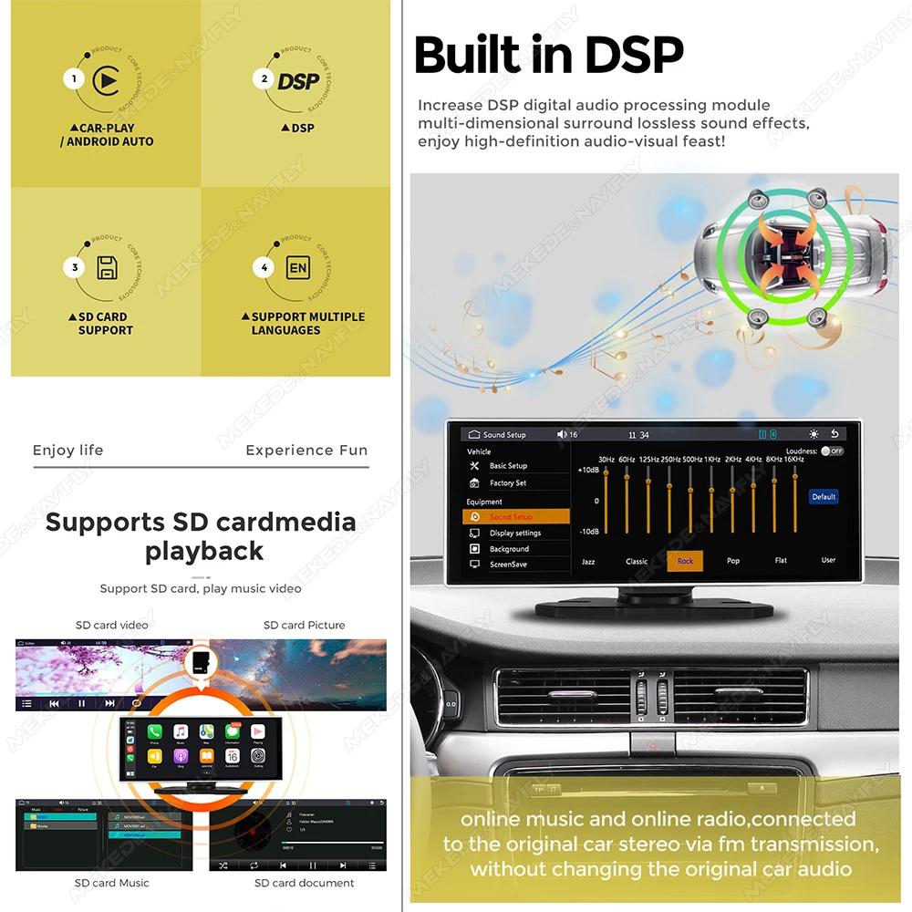 MEKEDE 11.26″ Linux System Portable installation Car Multimedia Player Carplay Android Auto IPS Screen Support DSP FM radio AUX