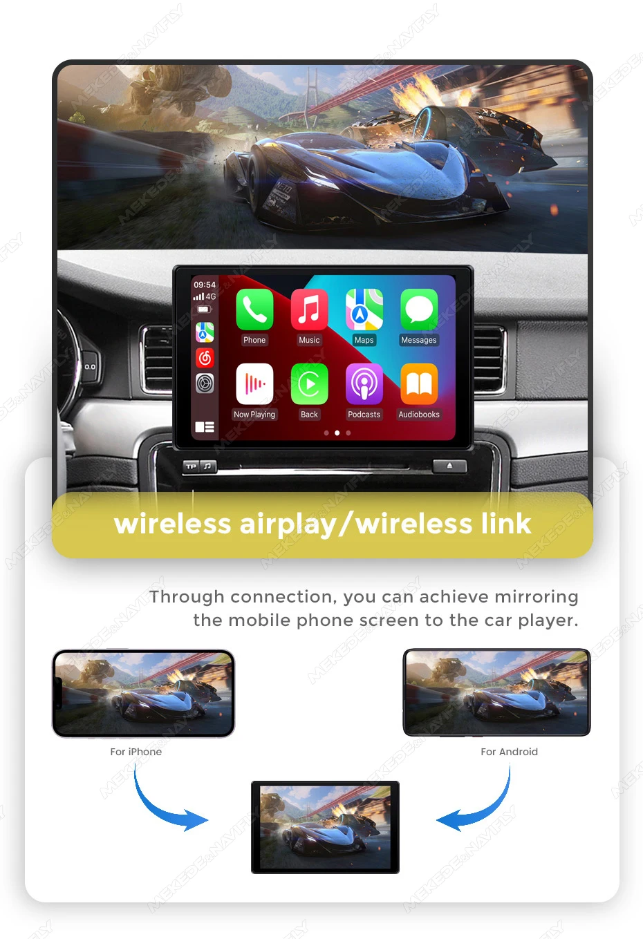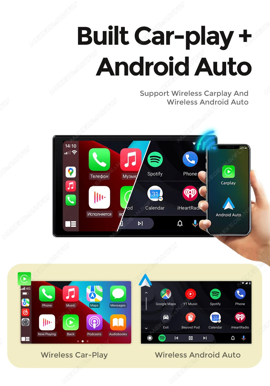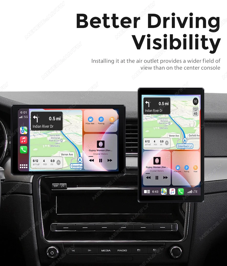 10.26 Support Apple CarPlay and Android Auto, easily connect via WiFi and Bluetooth for GPS navigation,