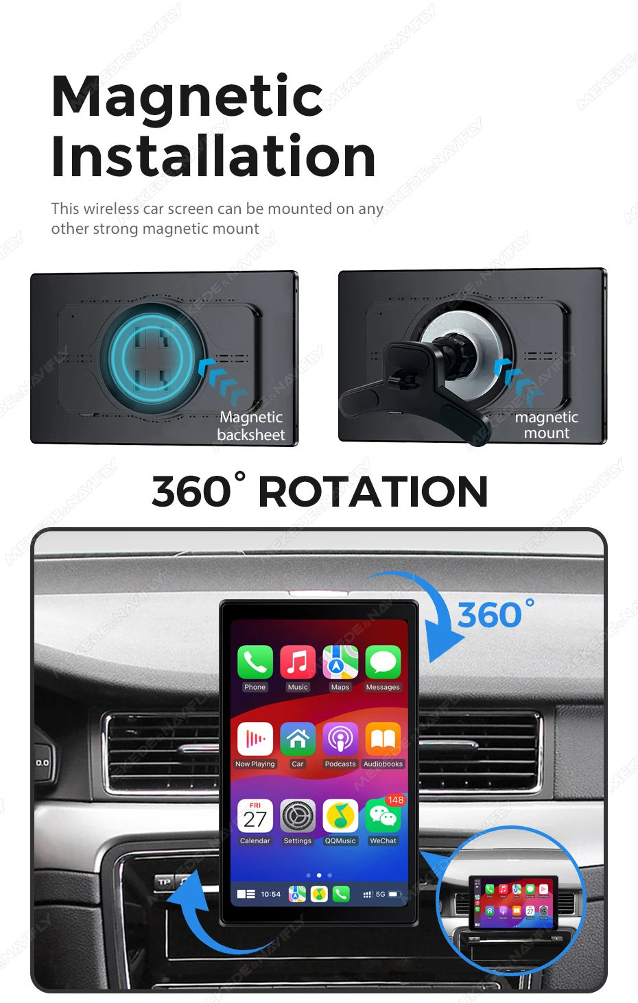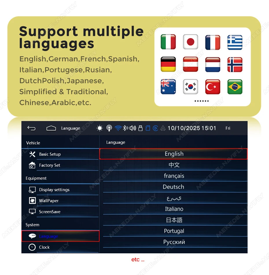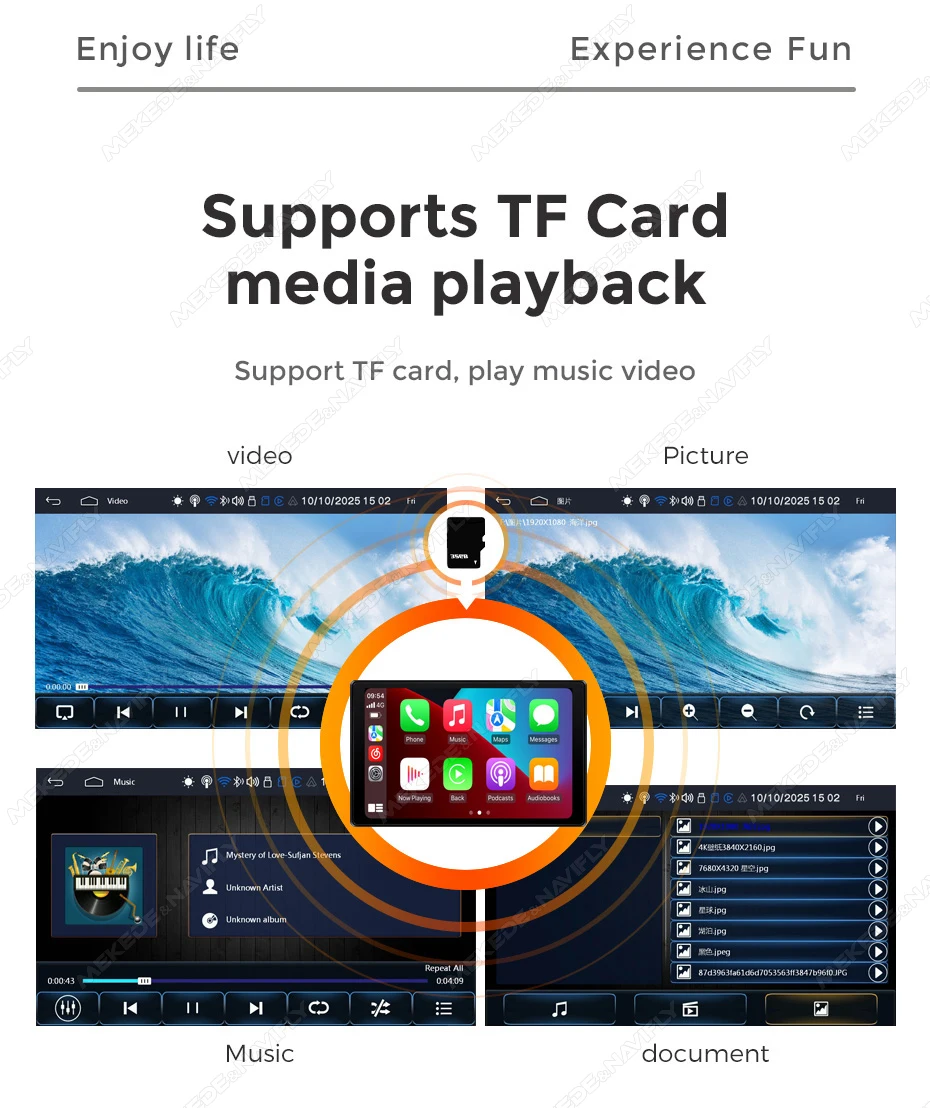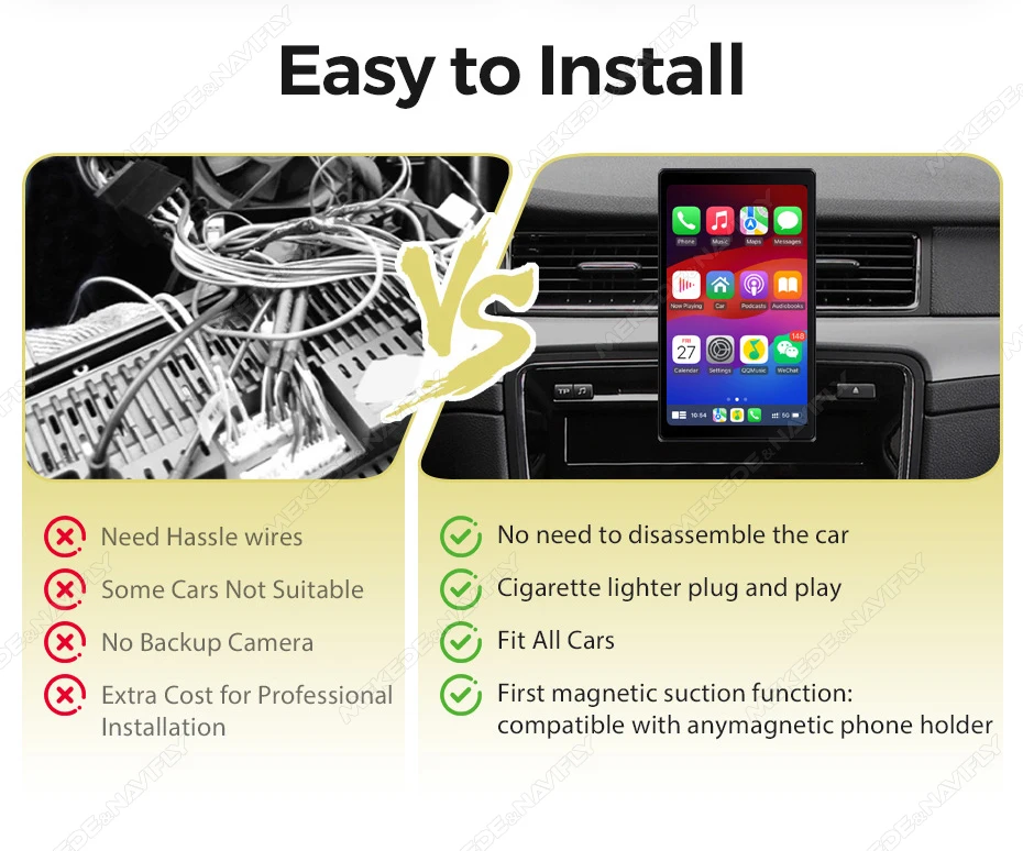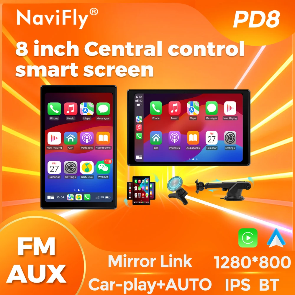 Navifly 8inch IPS Touch Screen Carplay Android Auto Universal Car Multimedia Player Support AUX FM Mirror Lin-K BT TF EQ Setup