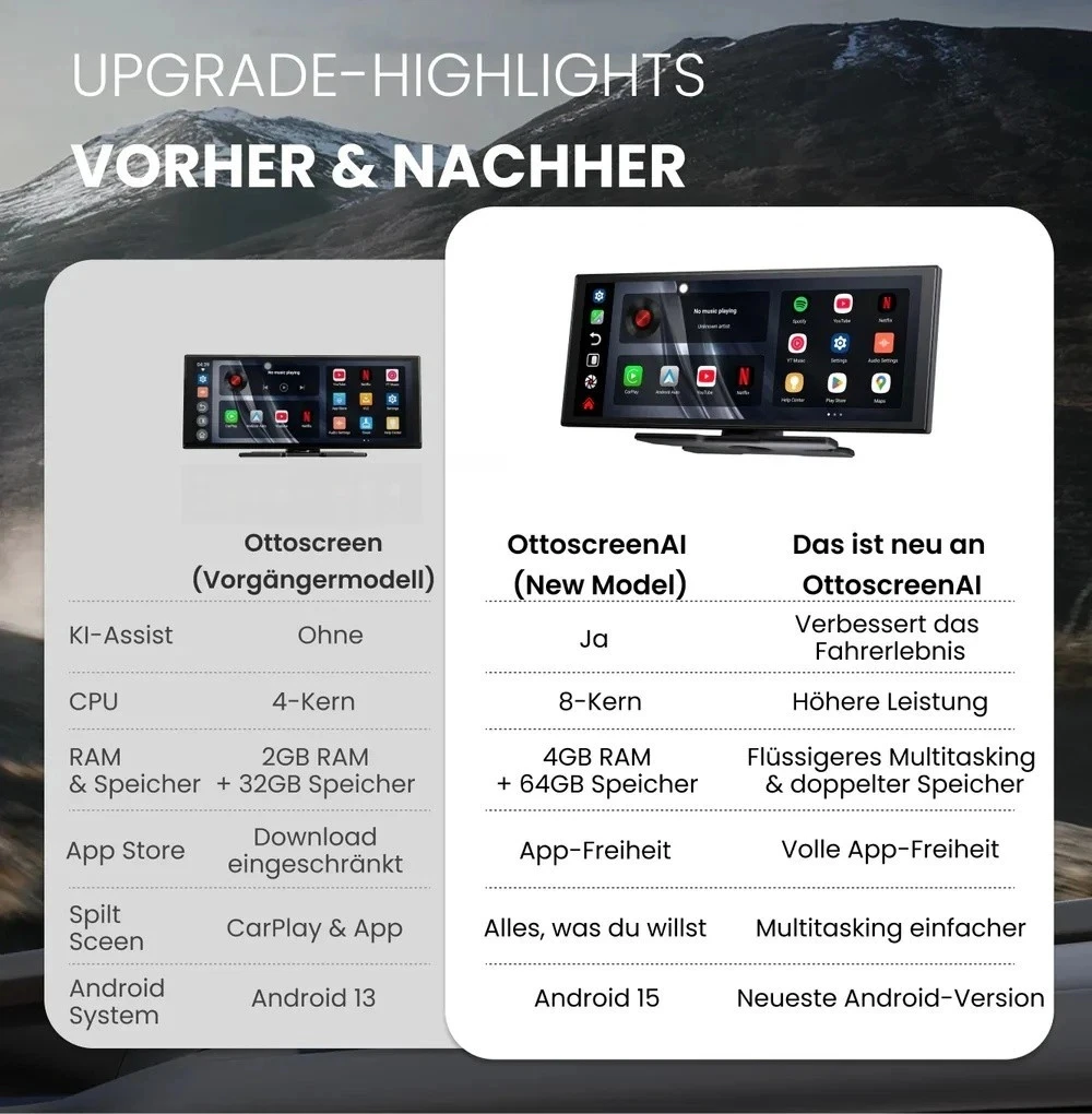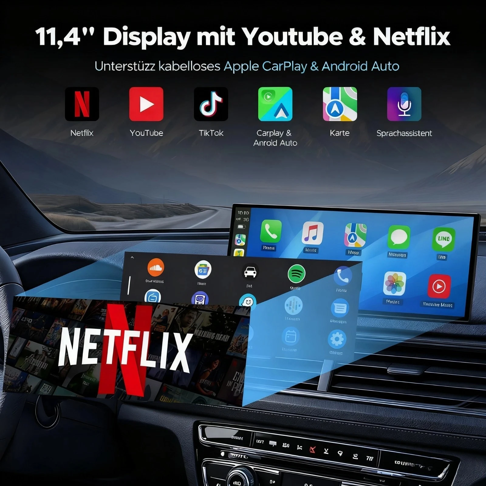 Ottocast Ai 11.4″ Wireless Carplay Screen Android 15 Car Radio Multimedia Video Split-screen For Netflix YouTube Play Store