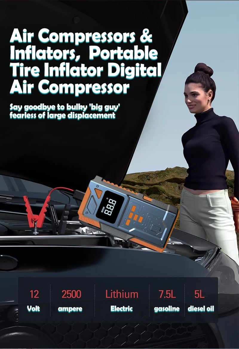 Be the first to review “Portable Car Jump Starter with Air Pump 5000A Peak, 10.5 Bar Maximum Inflation Auto Tyre Inflator Battery Starters with LED” Cancel reply