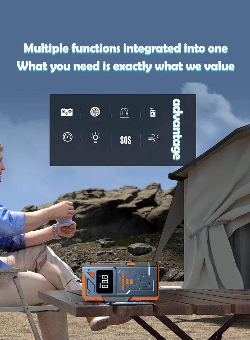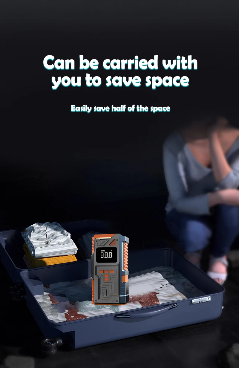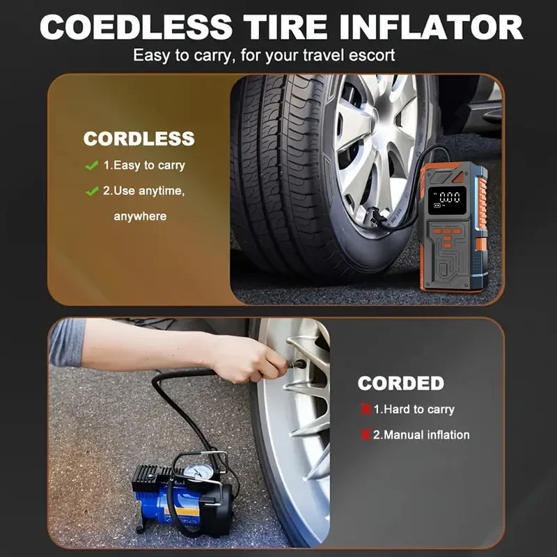 VYVYLABS 4-in-1 12V Rechargeable Emergency Jump Starter with 3 Modes LED Light Car Vacuum Cleaner Cordless Tire Inflator for car