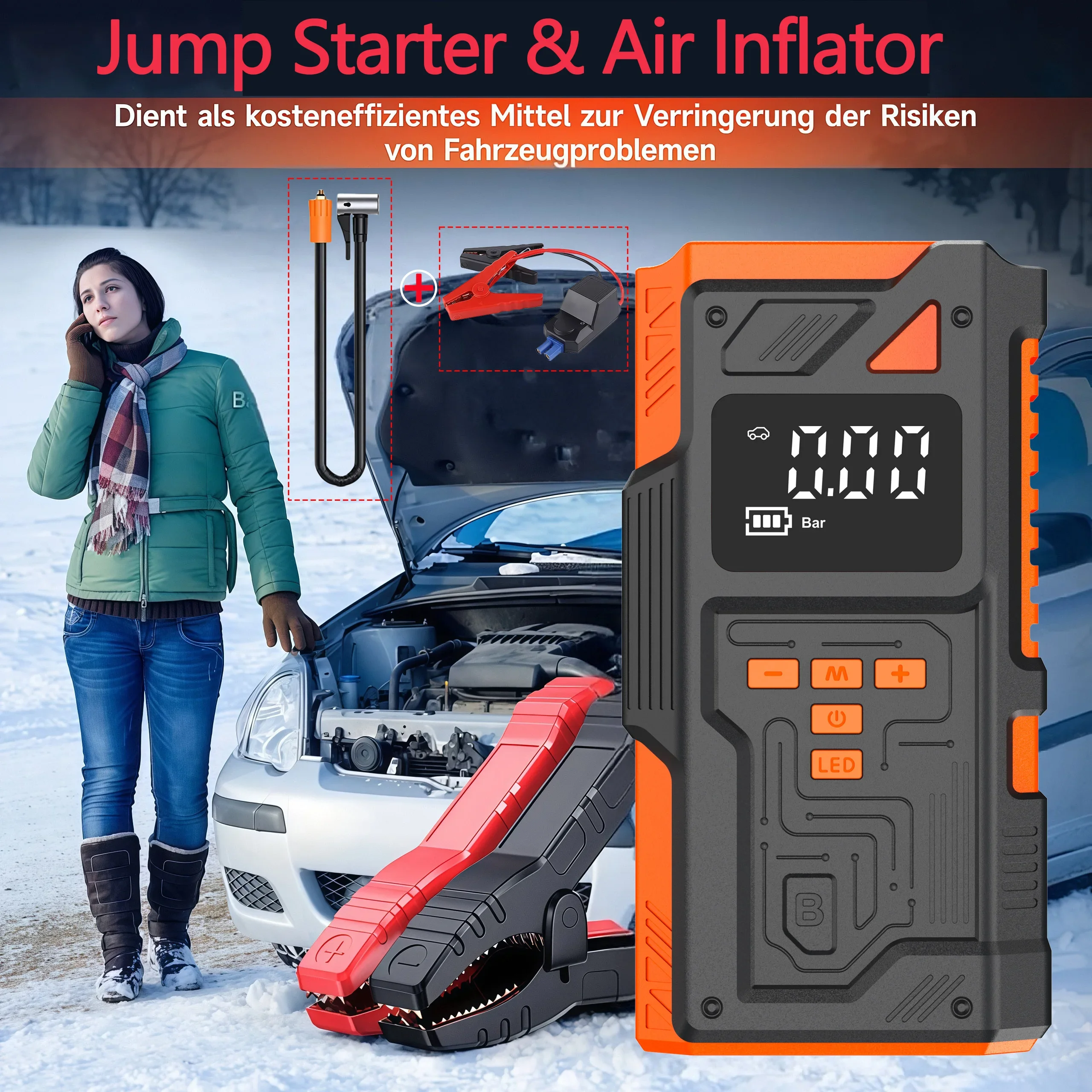 Portable Car Jump Starter with Air Pump 5000A Peak, 10.5 Bar Maximum Inflation Auto Tyre Inflator Battery Starters with LED