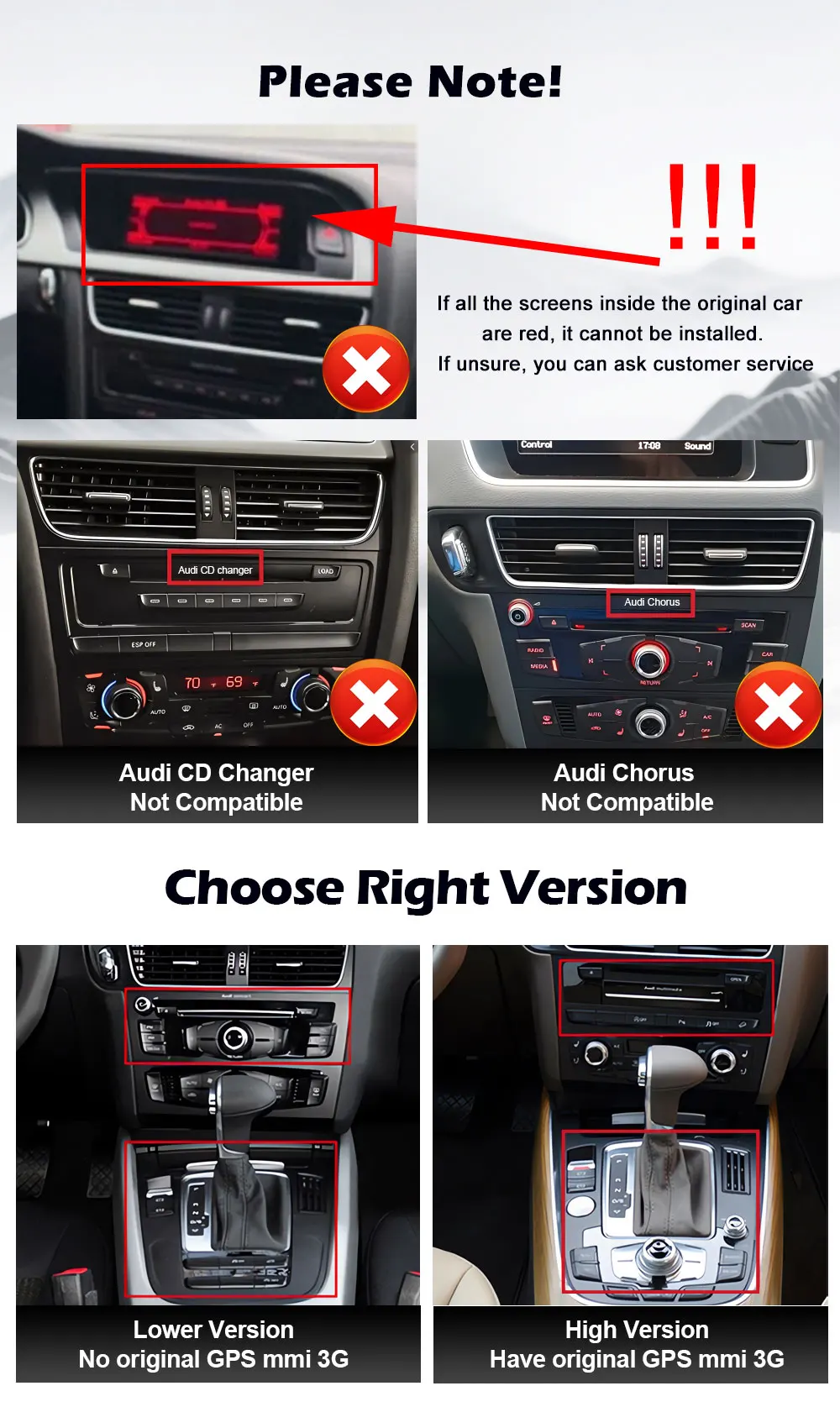 Please be sure to carefully check your vehicle model, year, and original center console before purchasing to ensure that your vehicle is compatible with our products. In addition, please read the information and precautions on our product detail page. Finally, I wish you a happy shopping!