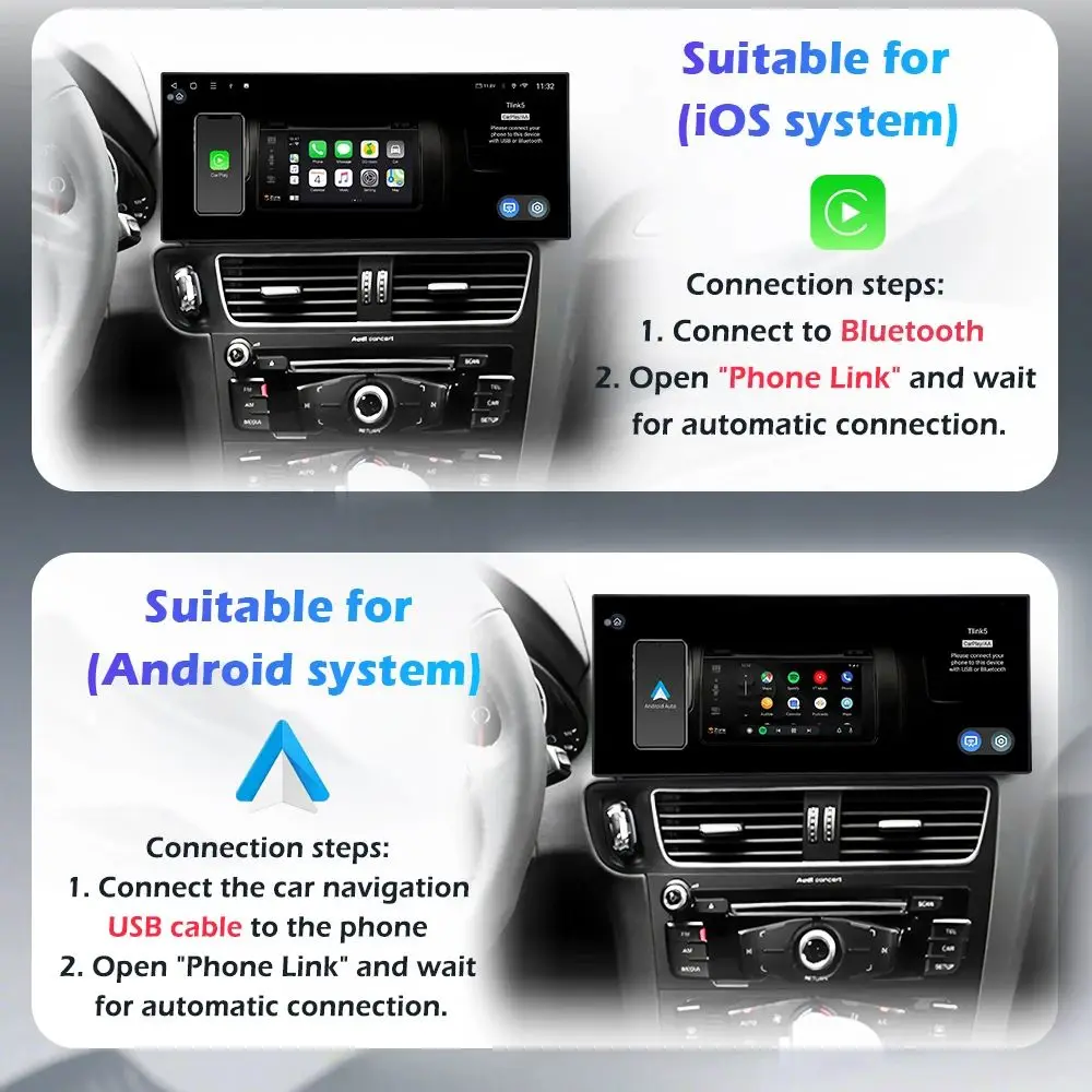 Right hand drive For Audi A4 A5 2009-2016 Car Radio Multimedia Wireless CarPlay Android 16 Navigation GPS QLED Screen Bluetooth