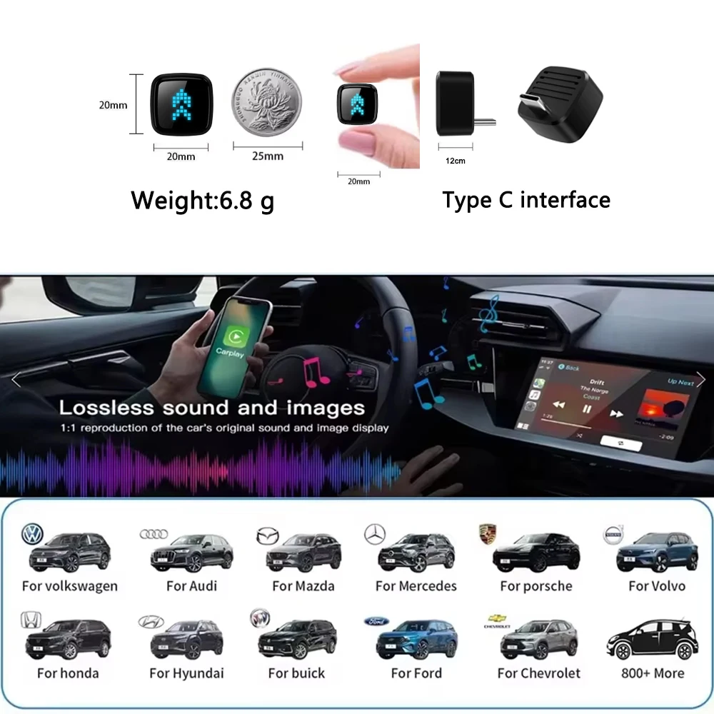 4.Compact and Stylish Design: Compact shape, smooth lines, beautiful, portable and does not take up space. Not only does the wireless CarPlay adapter USB for factory wired carplay cars not block your view, it can easily be hidden or installed out of the way. When connected to a wireless network or mobile hotspot, this CarPlay wireless adapter for iPhone can stream a wide range of great videos and music.