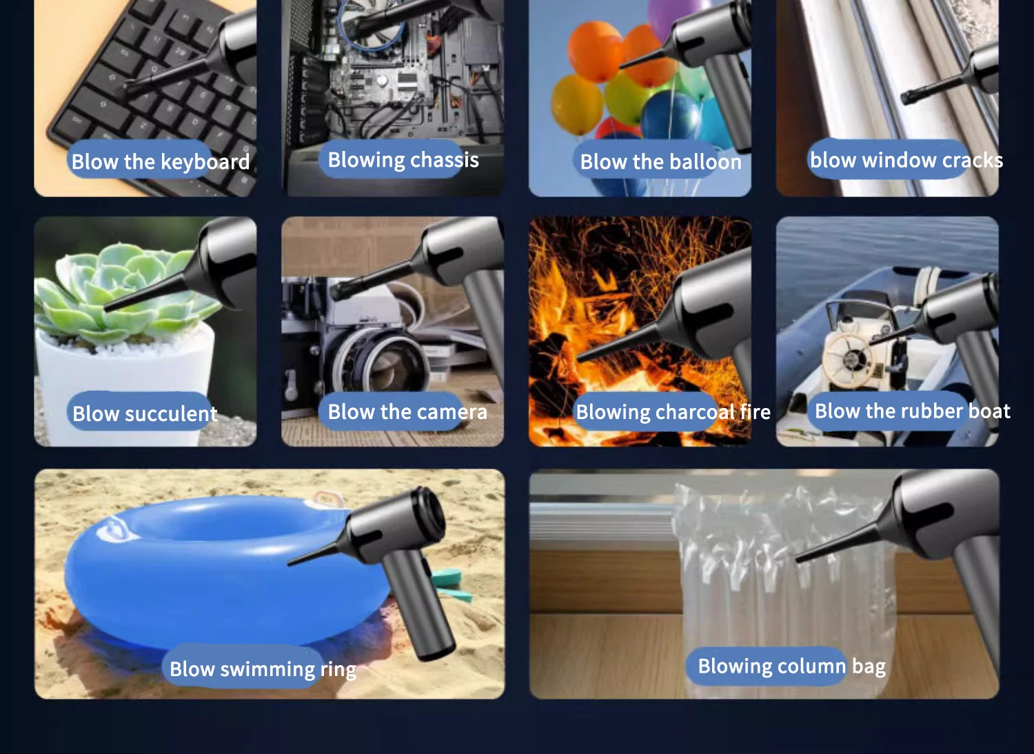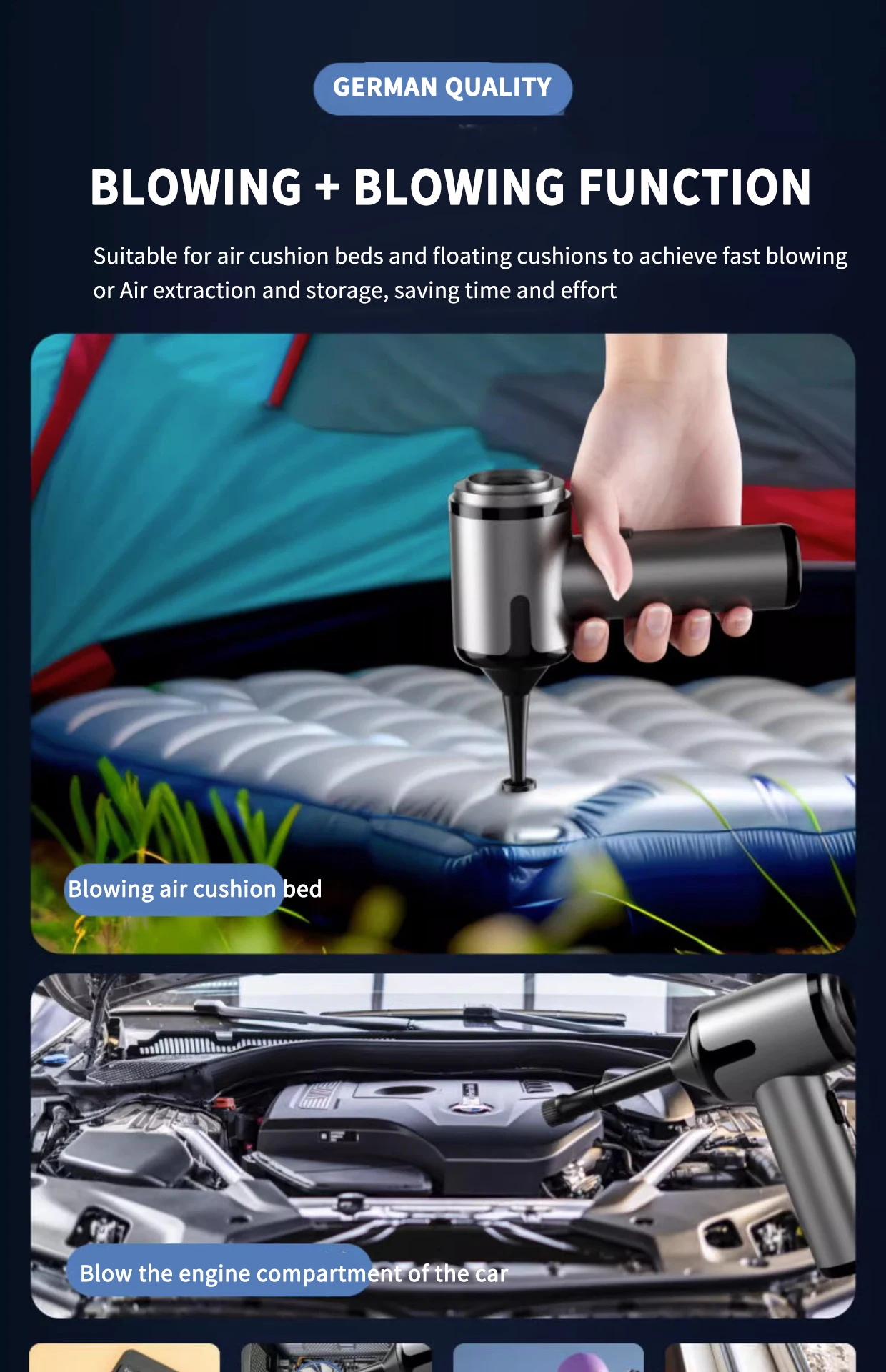 [Product functions]:mainly cleaning cars, vacuuming, blowing dust, blowing balloons and so on